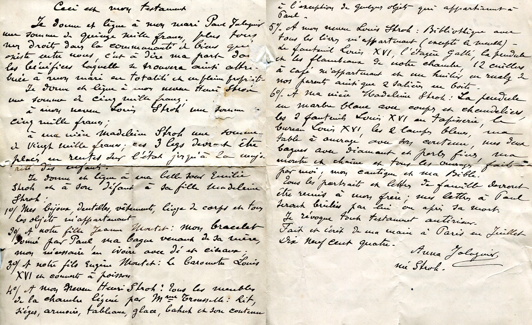 Testament d’Anna en 1904