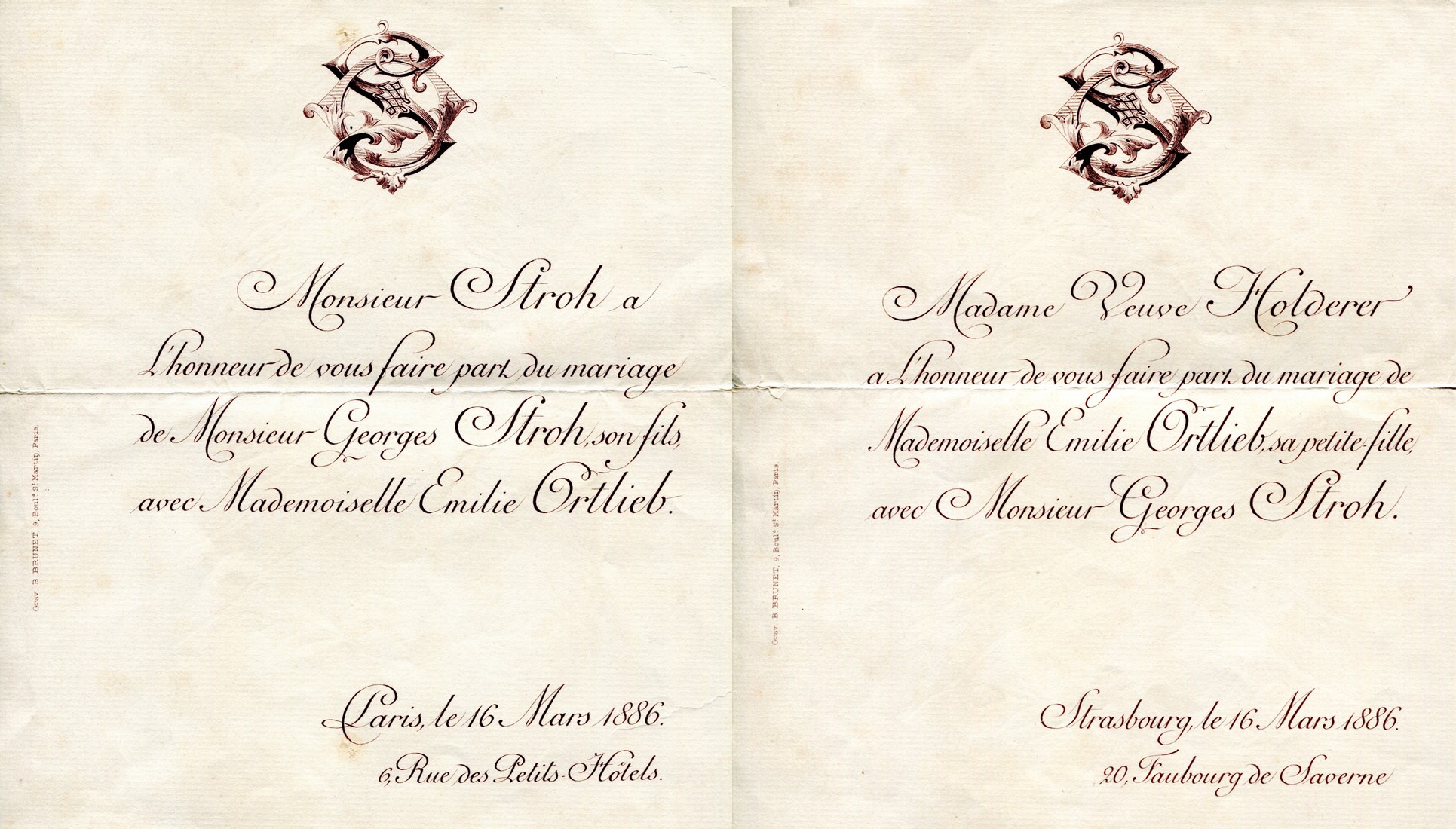 L’année 1886 fut marquée par une grande Joie : le 16 mars il épousa Mademoiselle Emilie ORTLIEB, de Ribeauvillé, qui fut, comme vous le savez tous, chers amis, la compagne la plus dévouée, la plus douce, la plus sereine qu’il soit possible, aplanissant toutes les difficultés, veillant à tout avec une sollicitude Jamais lassée, et répandant autour d’elle les trésors inépuisables de sa bonté. Elle fut d’ailleurs payée de retour, et si aujourd’hui son cœur est brisé, son affection, sa reconnaissance, son attachement nous émeuvent.