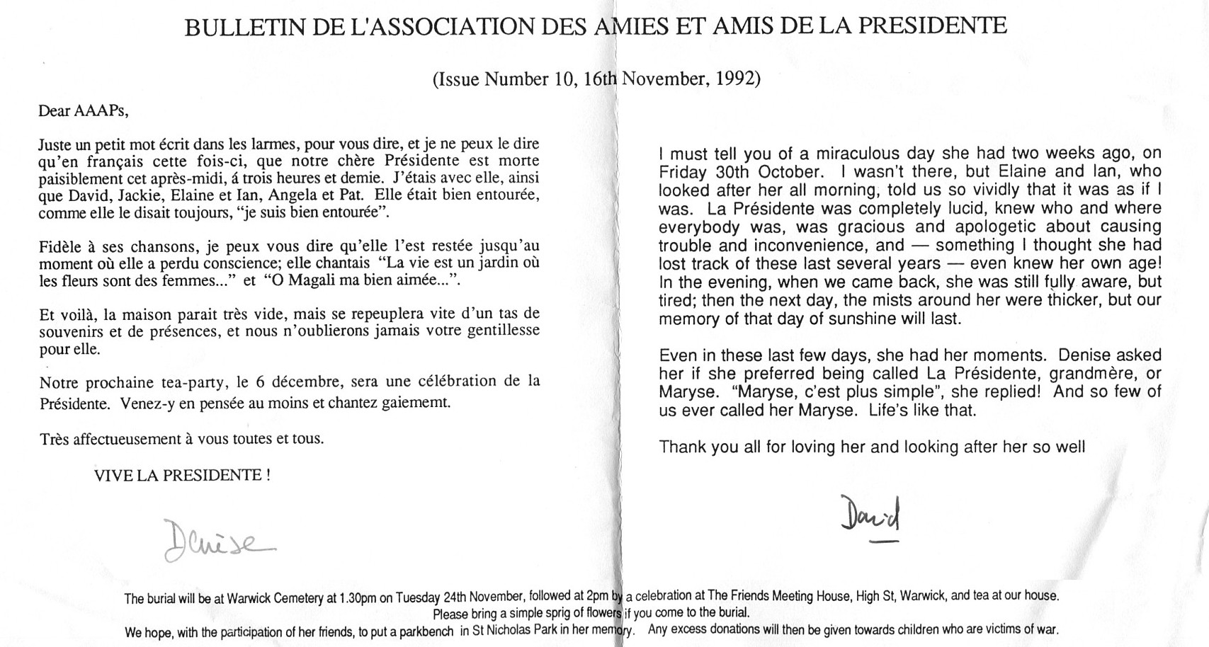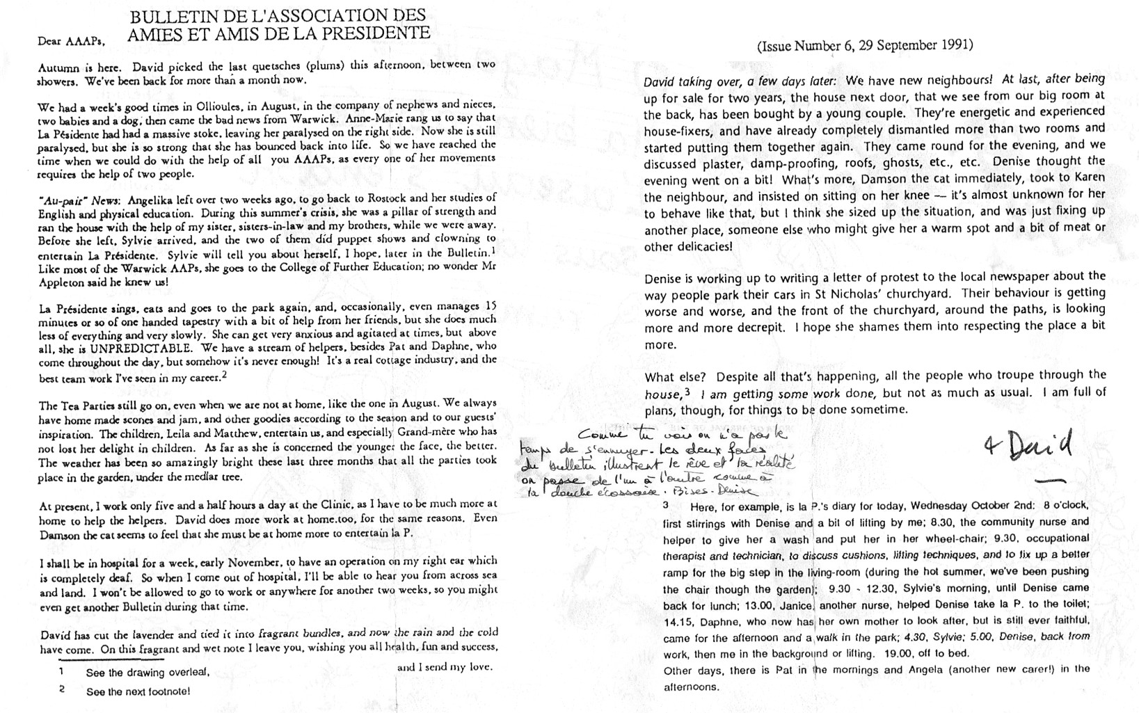 Les « Au pairs » qui prenaient soin de Maryse, traitées avec humour dans le bulletin des AAAP présenté ci-dessous :